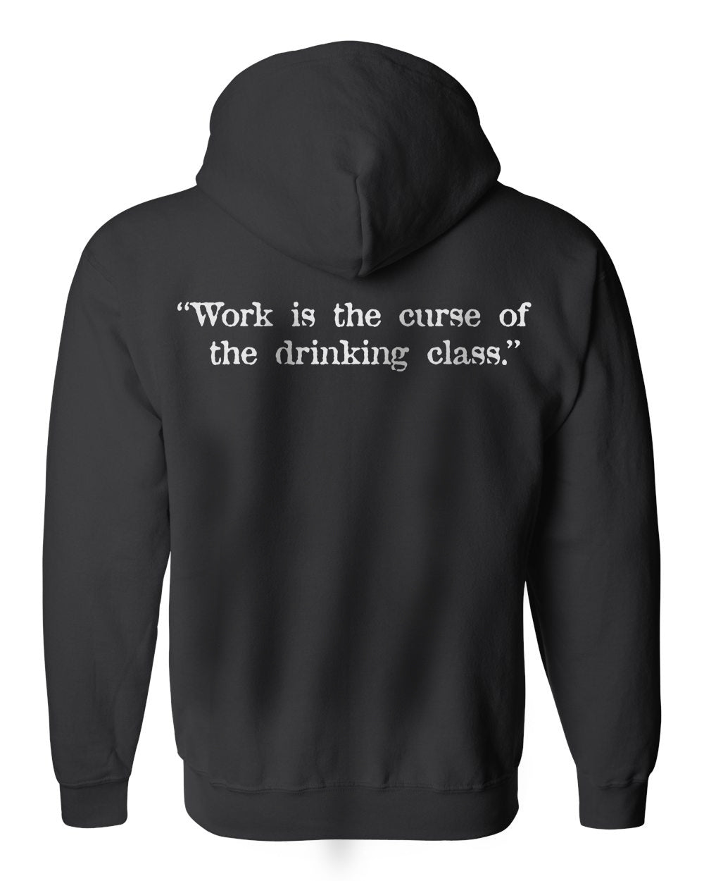 Stay warm and stylish with this Curse of the Drinking Class Full Zip Hoodie! Featuring a subtle Matthews Social House logo on the front and a humorous pun on the back, this premium hoodie is the perfect way to show off your wry wit. Slip into something comfy and get ready to break the curse of the drinking class!